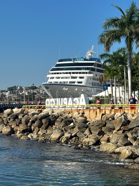 In many locations, our mid-sized ship docks in the middle of a city’s action. That was the case in Acapulco, Mexico (below). In destinations like the ones we visited in Central America, we dock in a port some distance from the sights, and we bus or shuttle there on guided outings. These rides can be quite long. They provide lots of opportunities to learn about a country’s history from the chatty guides and to see the landscape at 60 mph but little for Louis to photograph.