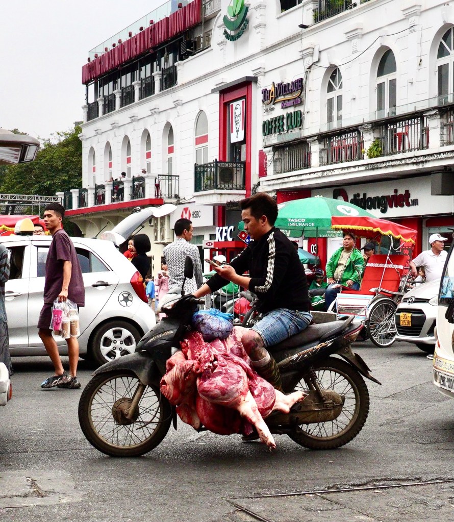 Fresh meat delivered by motorbike . . .