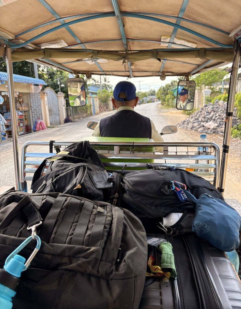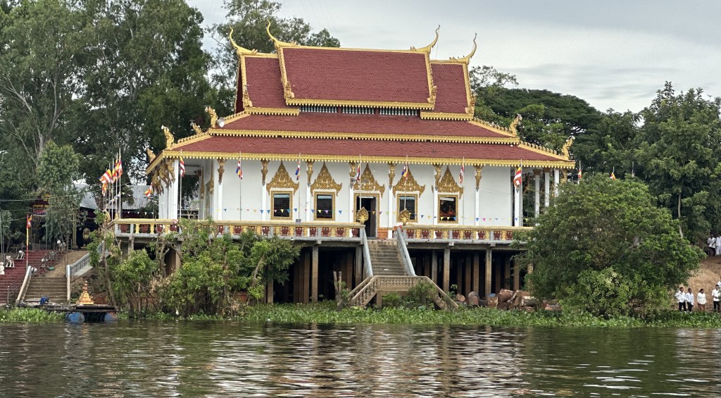 In a touch of irony, “Express Boat” chugs away from Siem Reap at 8 o’clock every morning and arrives on the outskirts of Battambang . . . whenever. Maybe four hours, if the water is high and nothing goes wrong, maybe more. Ours took seven hours, and the hotel receptionist told us we were lucky. Some take eight or nine. Calling it “the slow boat” is also a bit misleading. Ours was the only boat. The “fast boat” is a wheeled taxi.
