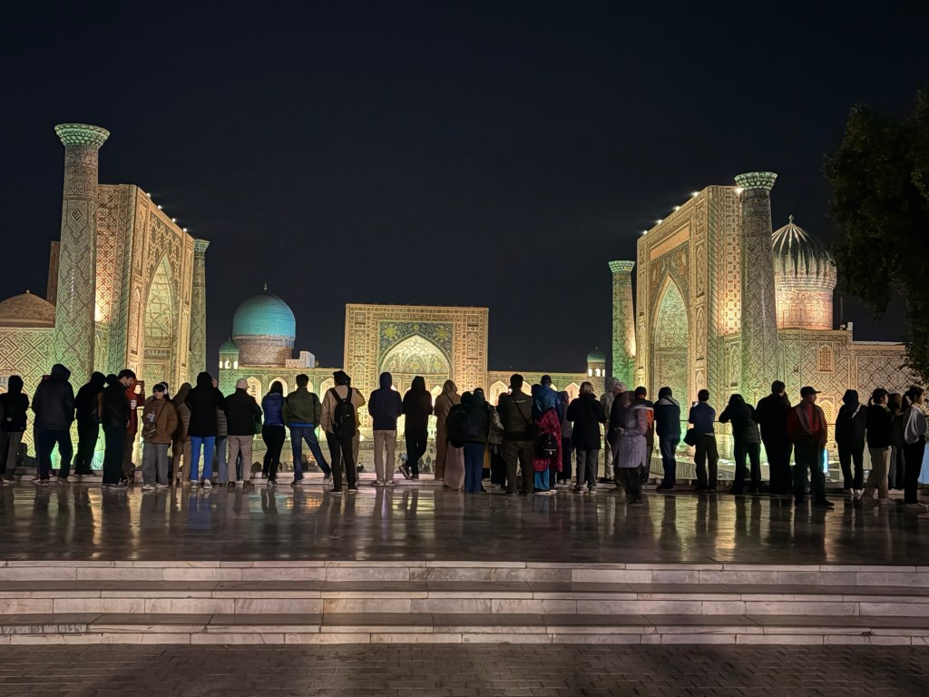 The few (precious few) structures Genghis left standing were those of use to him, perhaps most famously the 12th-century Kalyan (Karon) Minaret of Bukhara. Legend has it Genghis was so besotted by the structure’s grandeur he ordered it saved. As the tallest building in the city, our guide said he actually spared it for its military value as a watchtower.